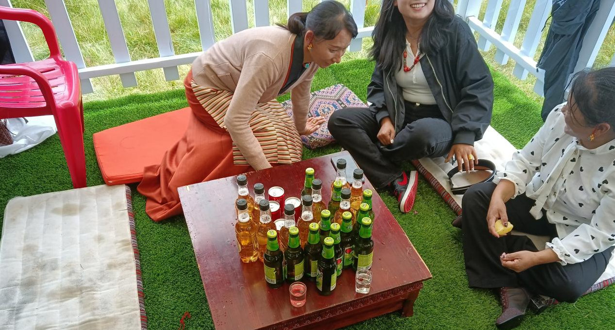 第二天大家?guī)е囡坪退钟筒杓案鞣N美食紛紛圍坐在一起,唱歌、跳舞、打藏牌、擲骰子、講故事、玩游戲、喝酒狂歡。